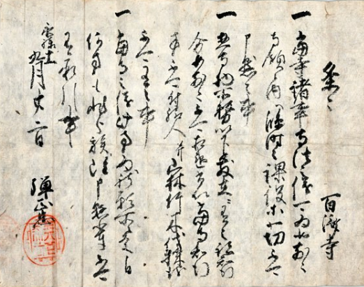 🔶 織田信長「百済寺宛 朱印状」(永禄11年〈1568〉9月22日)